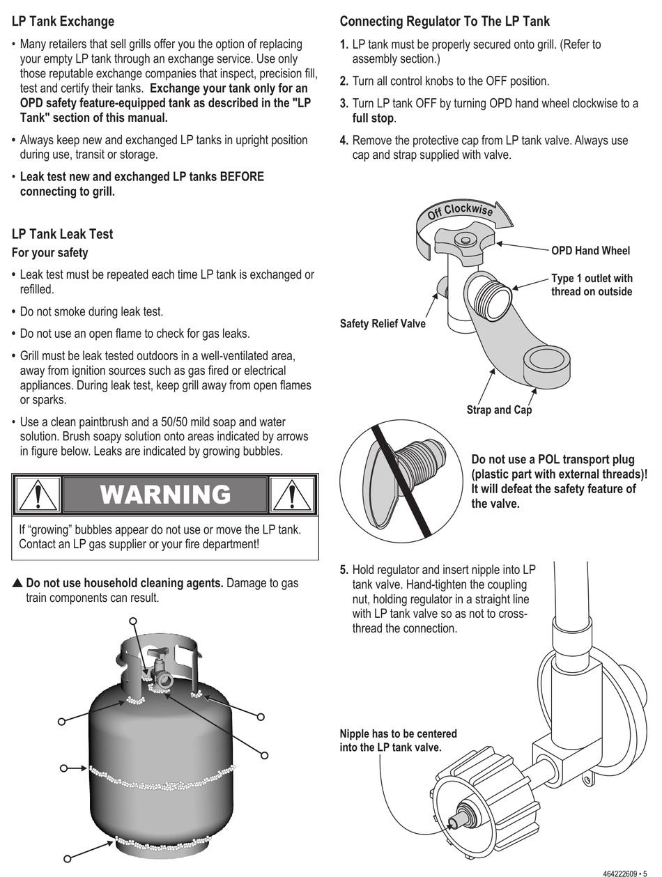 • Leak test must be repeated each time LP tank is exchanged or