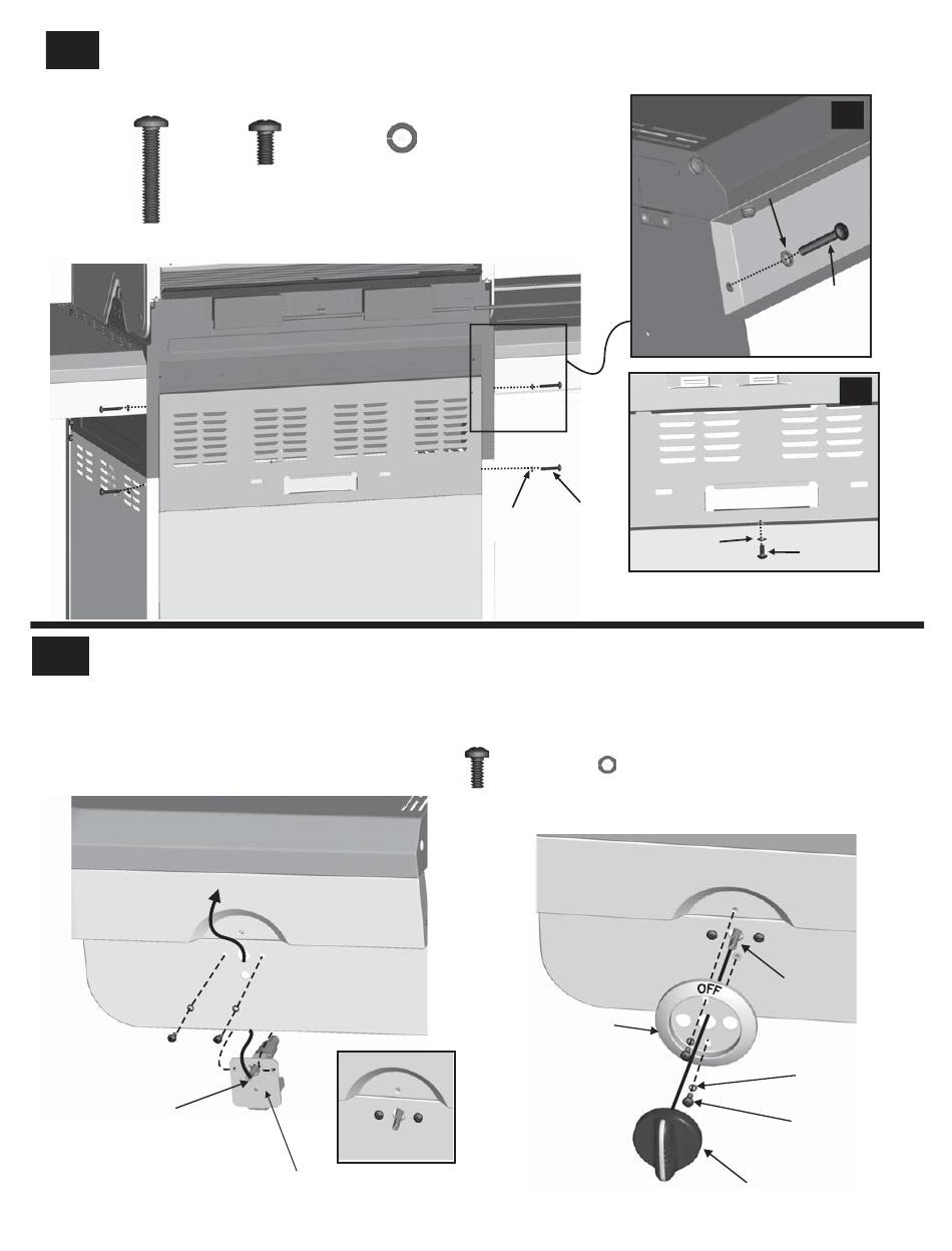 fascia, making sure "OFF" is on the top. Attach using two #8-32x3/8" screws and 4mm lock washers. Press sideburner