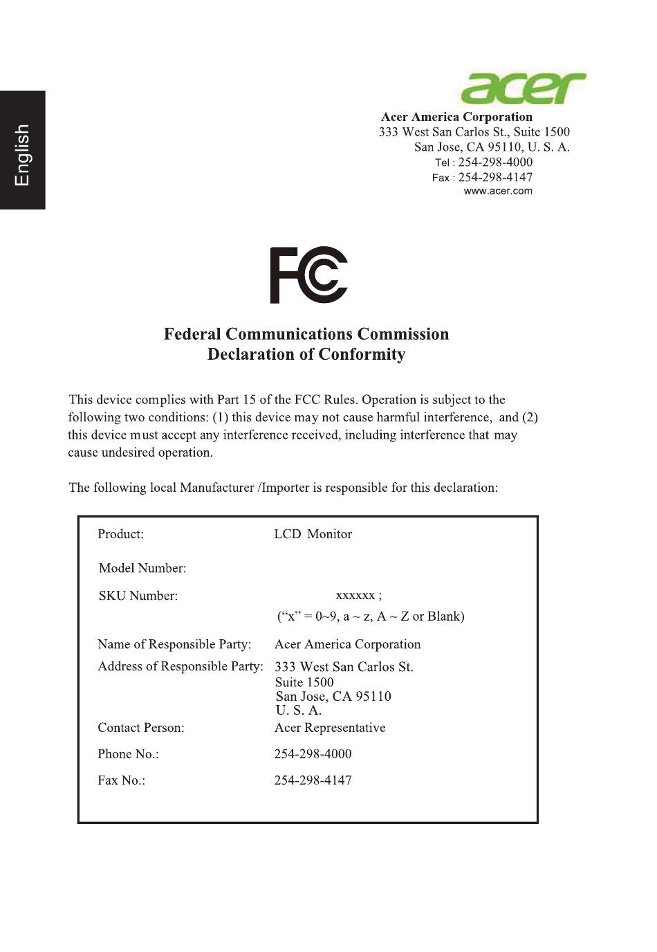 Monitor Acer KG241Q Lifecycle Extension Manual