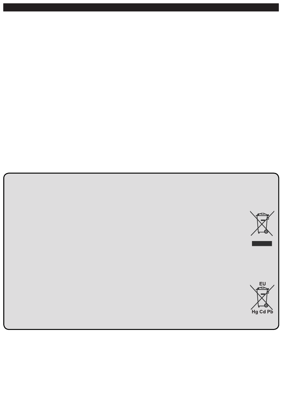 The crossed out wheeIed dust bin symbol indicates that products must be collected and disposed of separately