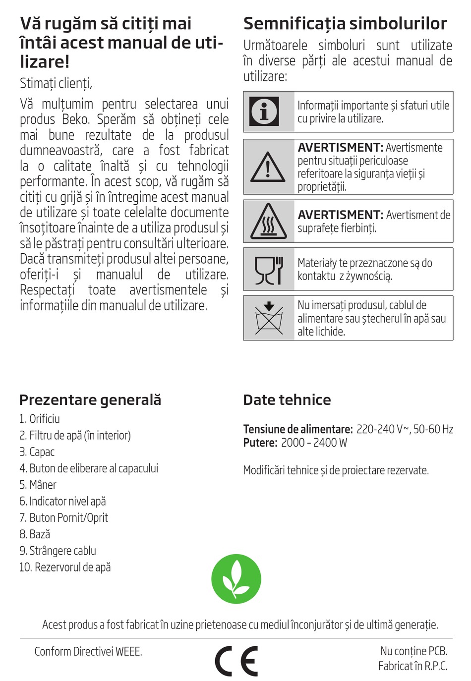 citiţi cu grijă şi în întregime acest manual