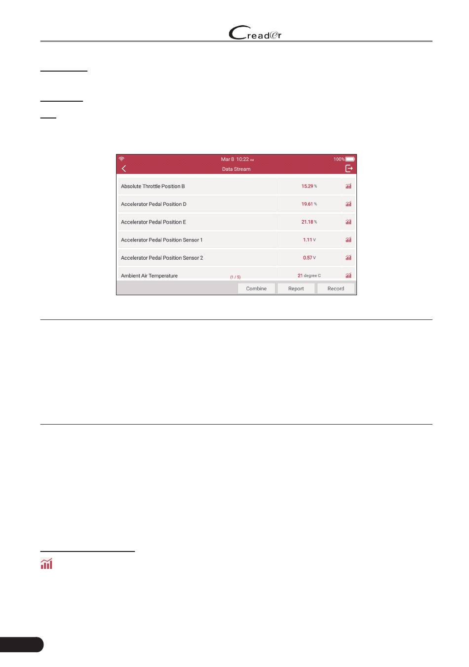 After selecting the desired items, tap "OK" to enter the data stream reading