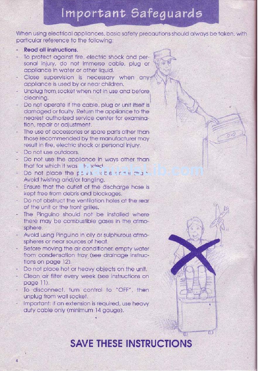 Important Safeguards - Delonghi Pinguino Pac03U User Manual