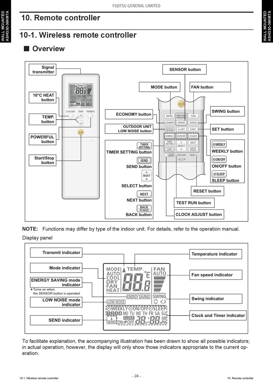 NOTE: Functions may differ by type of the indoor unit. For details, refer to the operation manual.