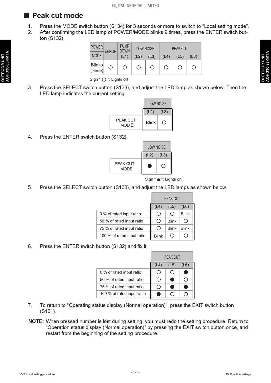 Press the MODE switch button (S134) for 3 seconds or more to switch to "Local setting mode".