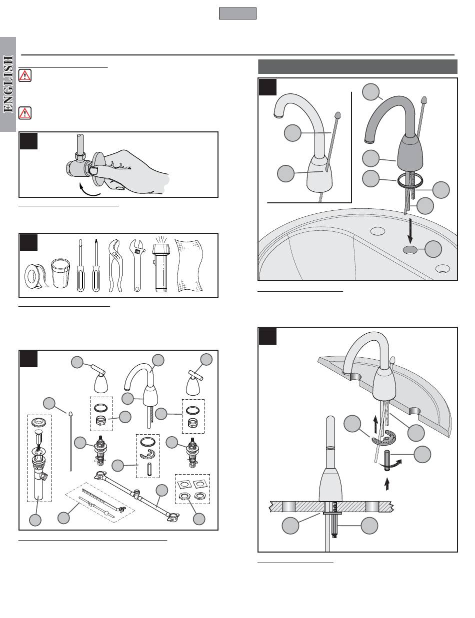under the sink or near the water meter. If you are replacing an existing faucet, remove