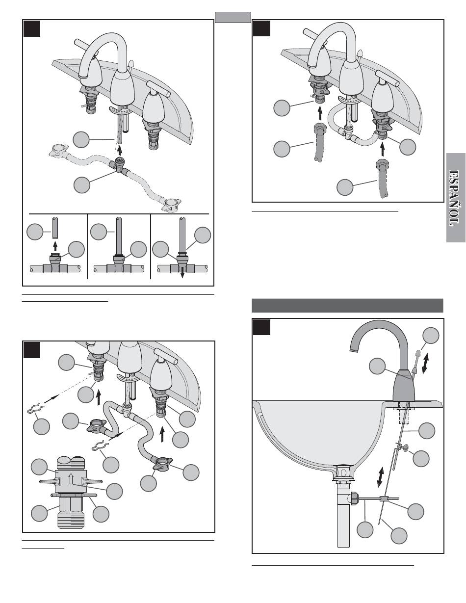 Desde abajo del fregadero, introduzca el conector central (12A) en el vástago del conducto
