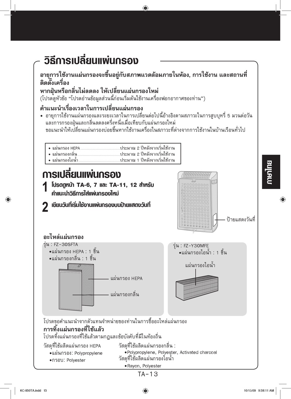 คํ า แนะนํ า เรื ่ อ งเวลาในการเปลี ่ ย นแผ่ น กรอง