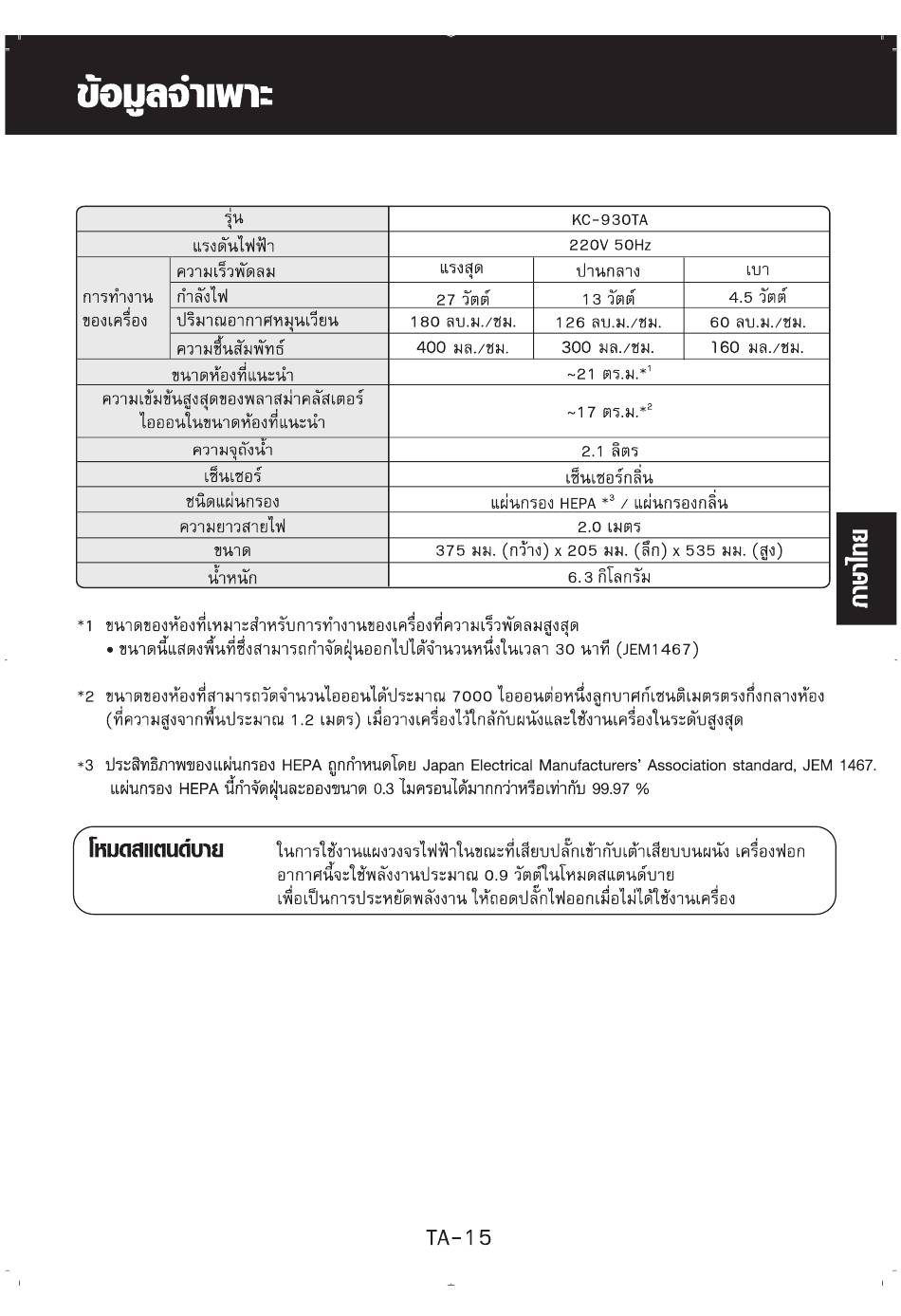 Air Cleaner Sharp FP-J50TA Operation Manual