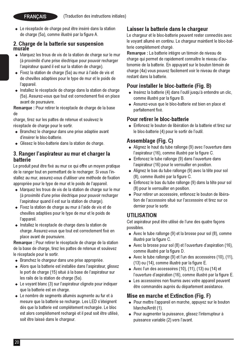 Pour installer le bloc-batterie (Fig. B)