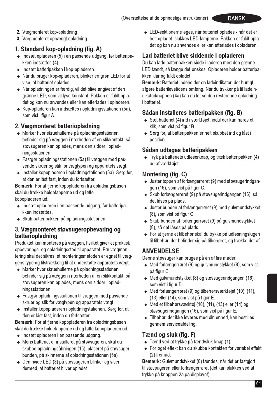 Tænd og sluk (fig. F)