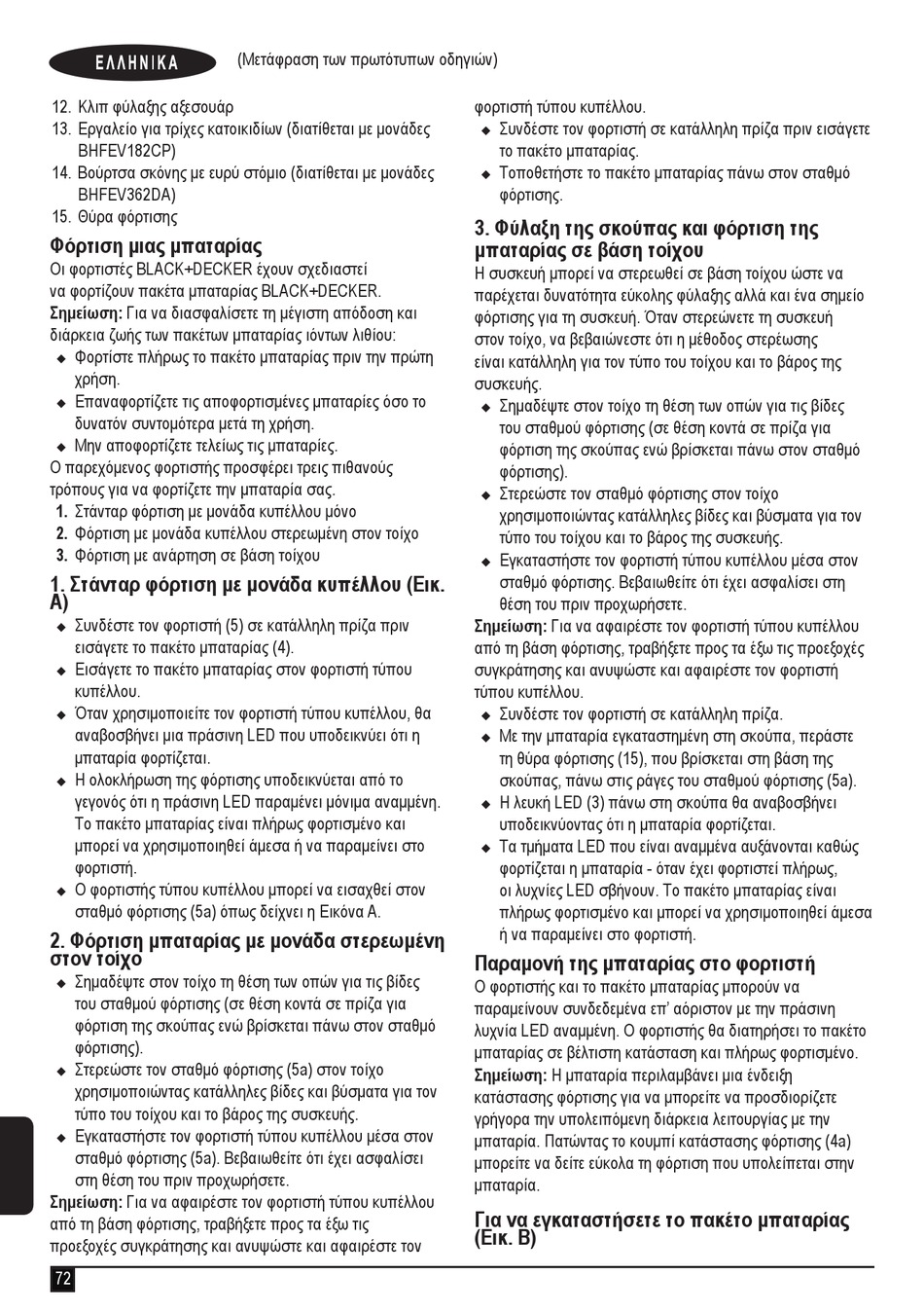 να φορτίζουν πακέτα μπαταρίας BLACK+DECKER.