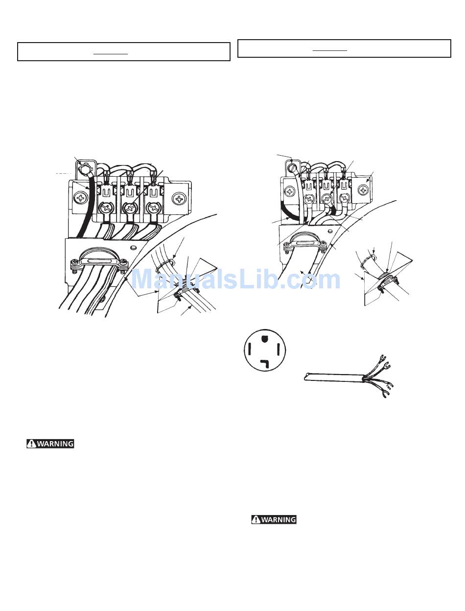 3. Thread a U.L. listed 30 amp. power cord, NEMA 10-30 Type