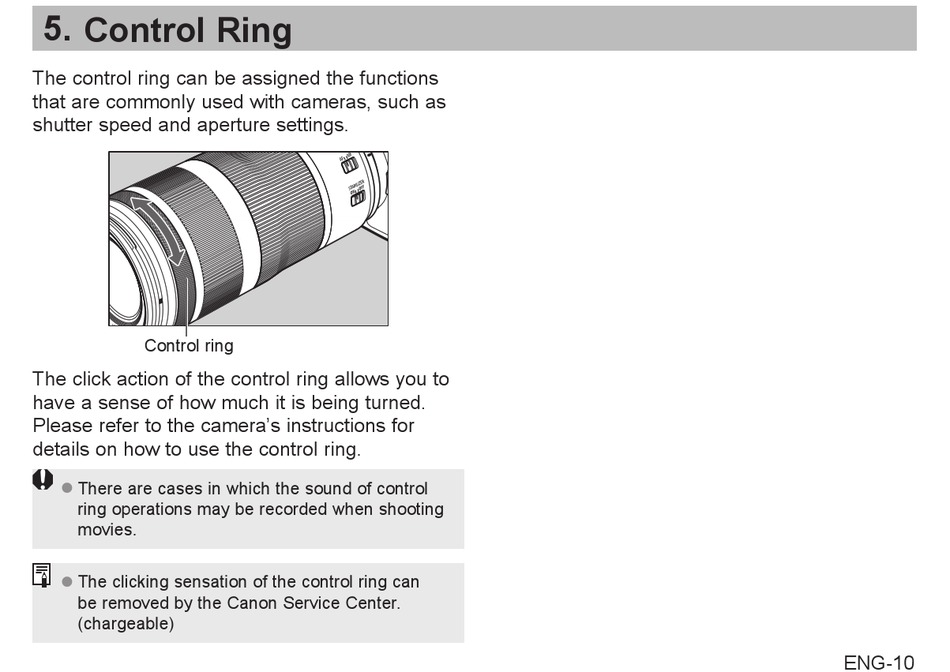 details on how to use the control ring.