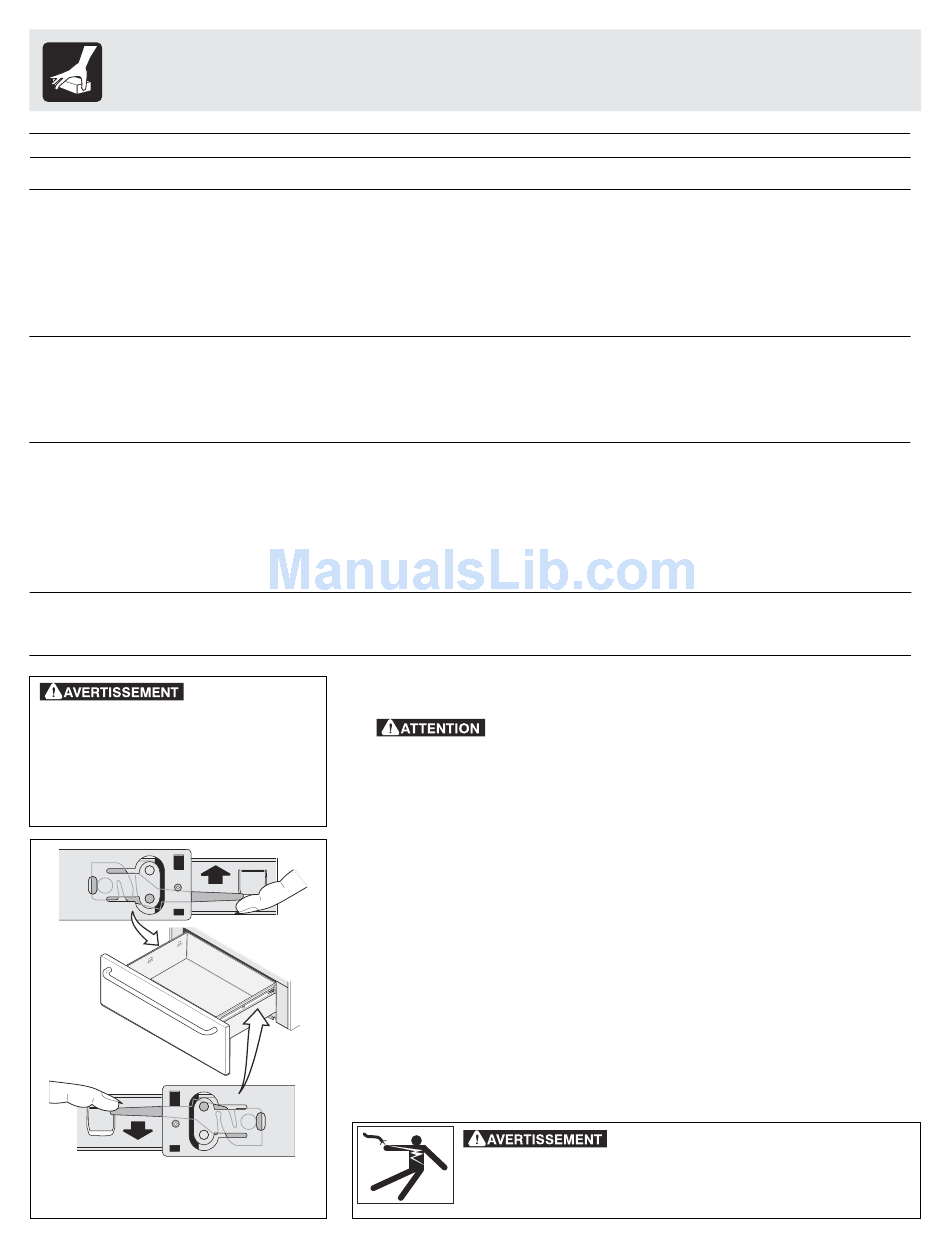 avant d'enlever ou de replacer le tiroir-réchaud.