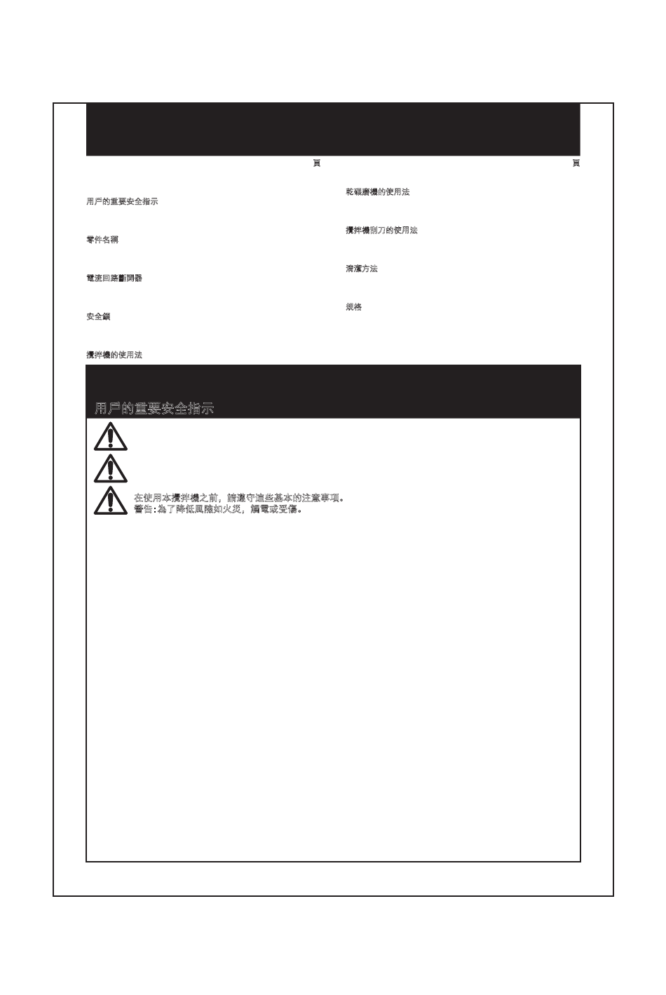 在使用本攪拌機之前,請遵守這些基本的注意事項。