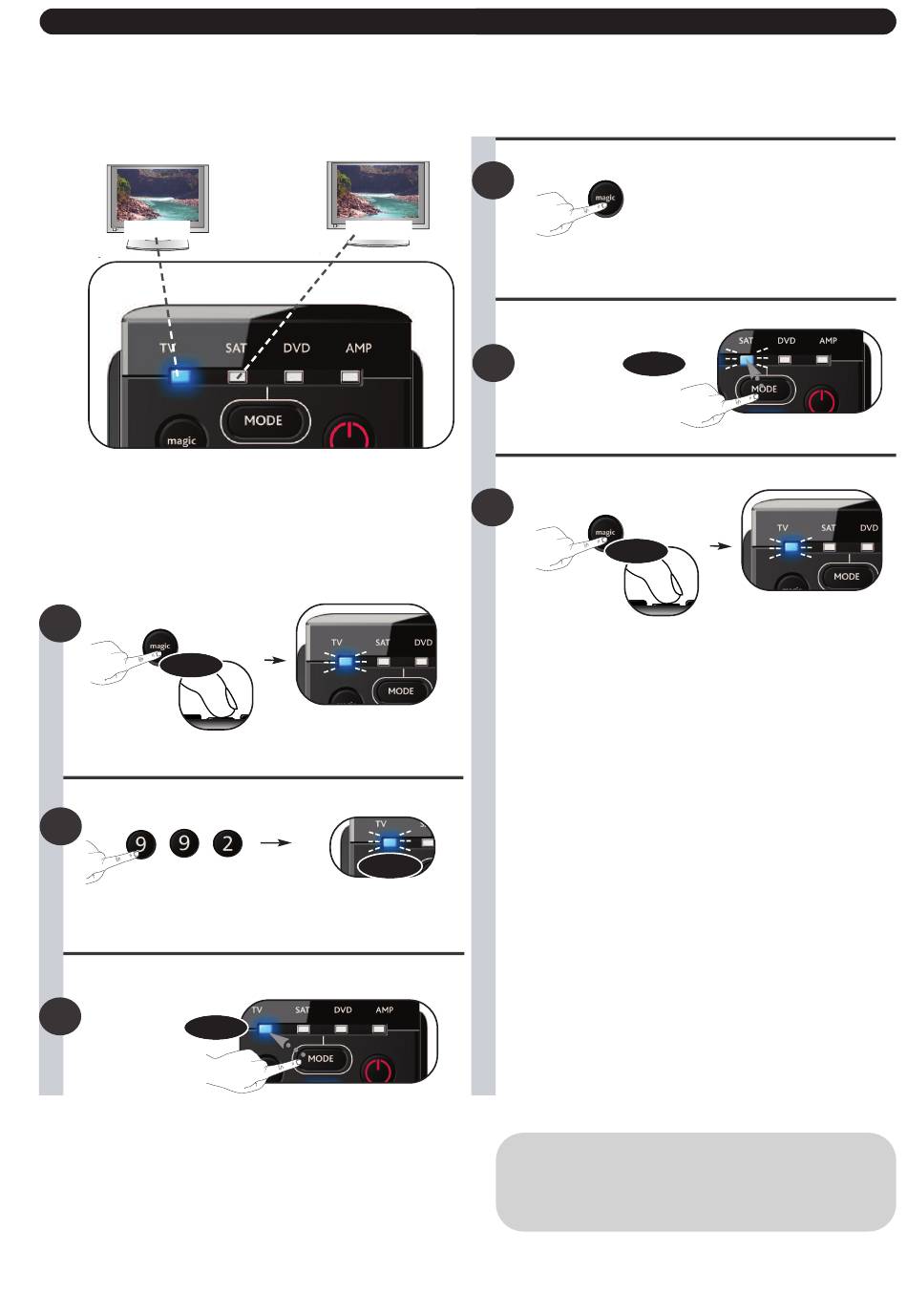 In the following example you wish to set up an additional television. Therefore we will reassign (change) "sat" mode into "tv" mode.