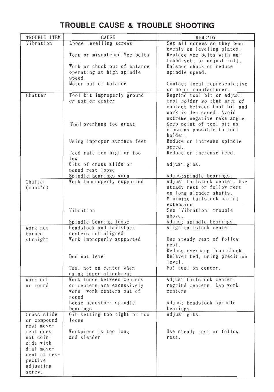 7. TROUBLE CAUSE & TROUBLE SHOOTING