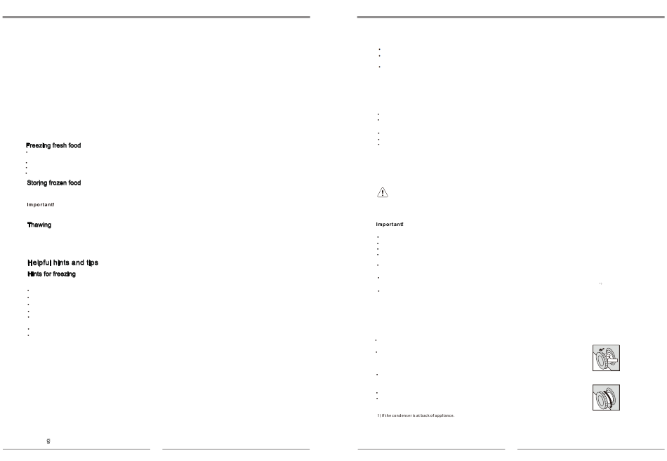 the condenser at the back of the appliance once a year with a soft brush or a vacuum cleaner.