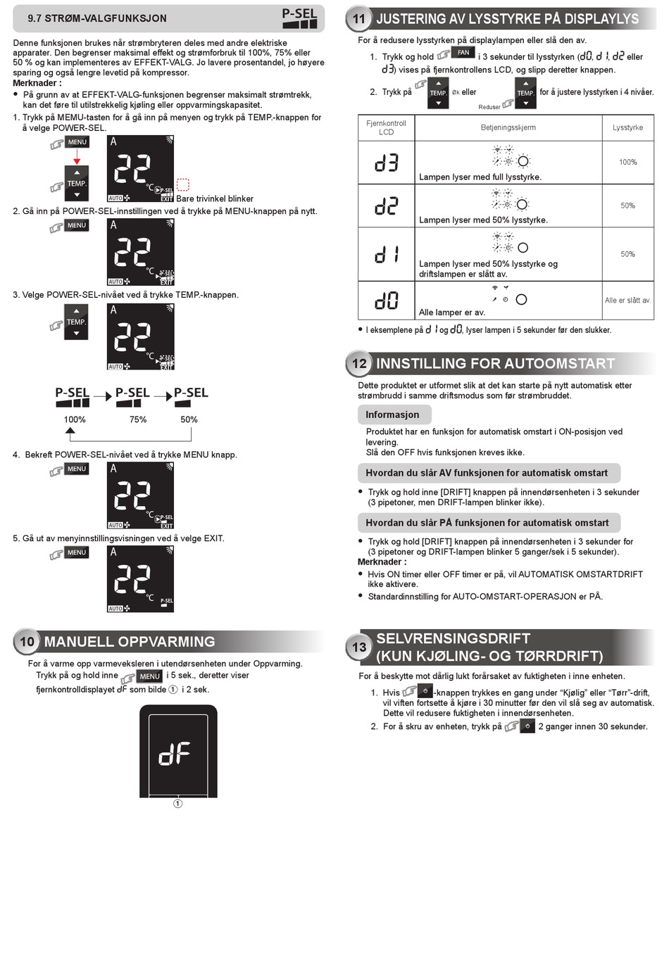 ● Trykk og hold inne [DRIFT] knappen på innendørsenheten i 3 sekunder