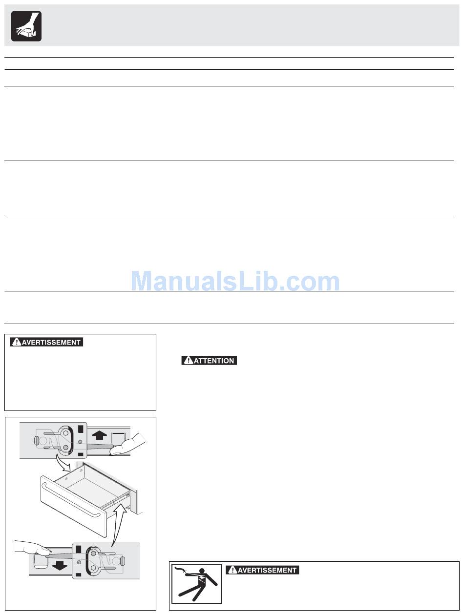 avant d'enlever ou de replacer le tiroir-réchaud.