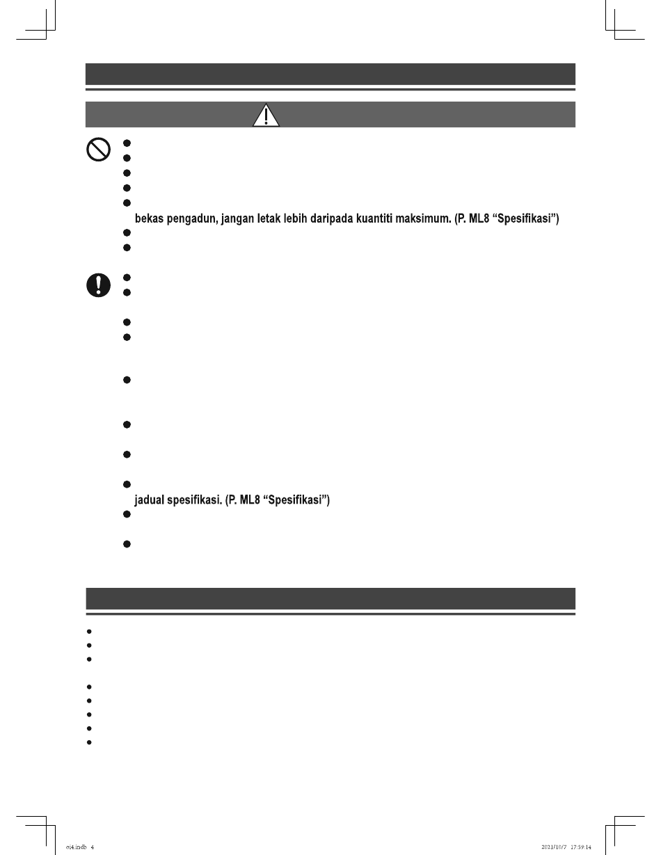 dengan makanan selepas penggunaan. (Lihat P. ML7 "Cara Membersih")
