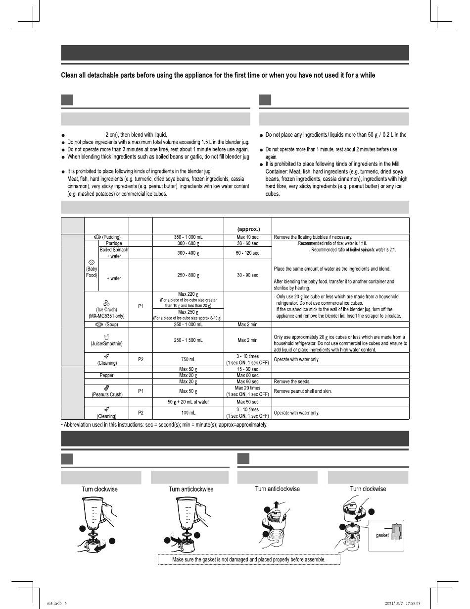 assemble them securely. (P. EN6 "How to Use" and P. EN7 "Cleaning and Care" )