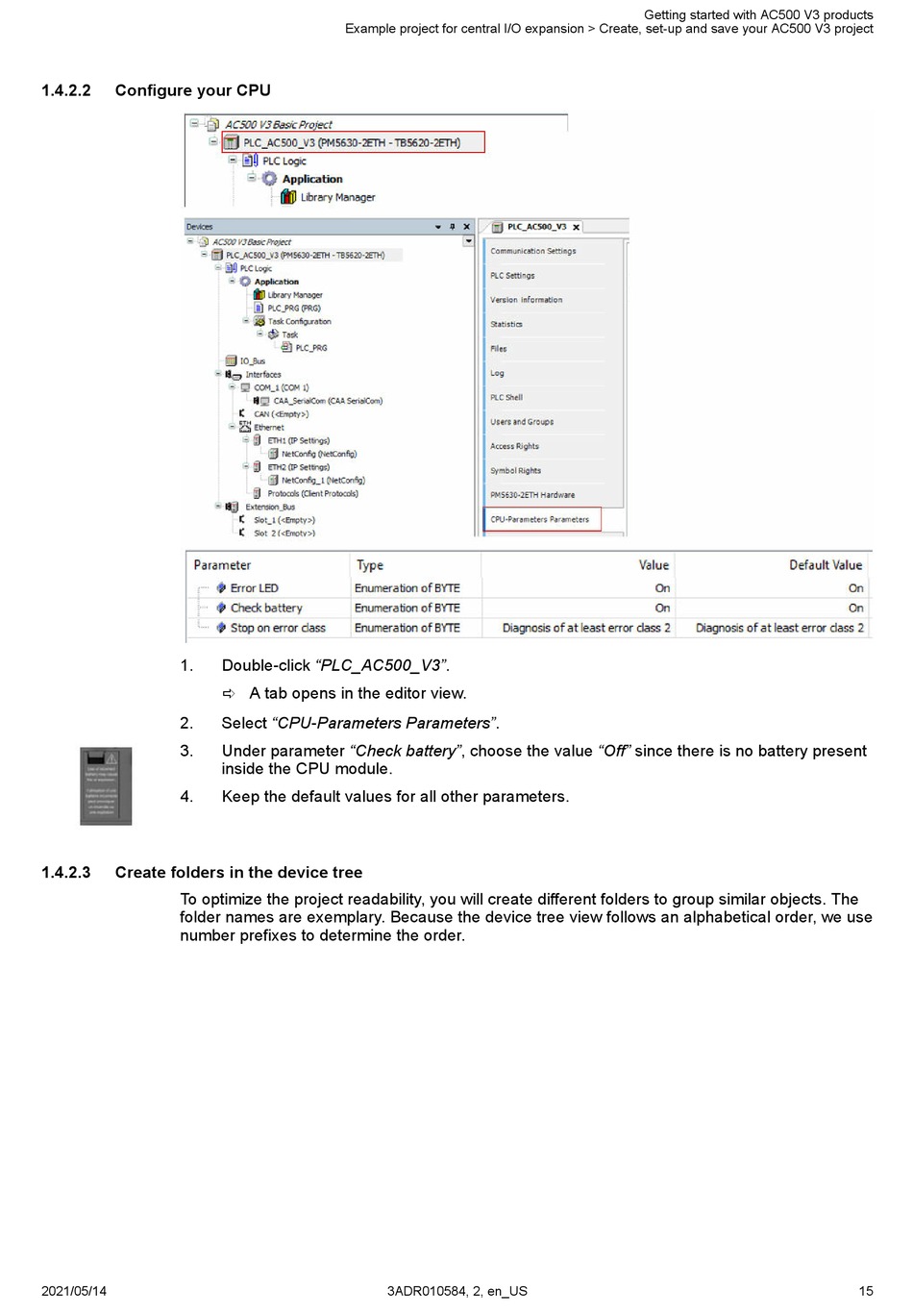 Example project for central I/O expansion > Create, set-up and save your AC500 V3 project