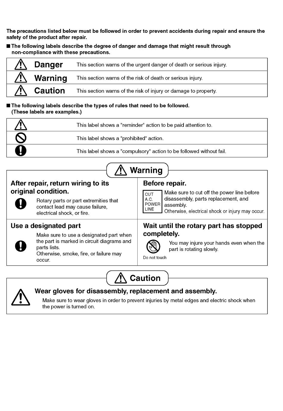 Safety Precautions - Panasonic Mx-151Sg2Wtn Service Manual