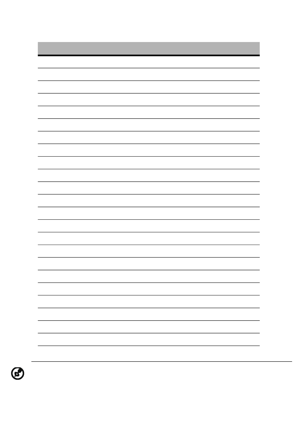 STANDARD TIMING TABLE