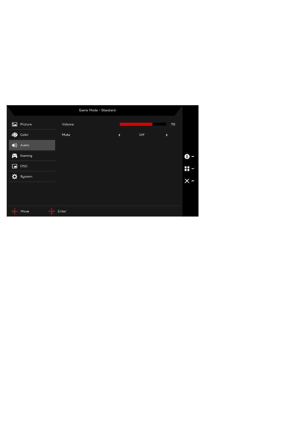 Using the Navi/OK button, select Audio from the OSD. Then navigate to