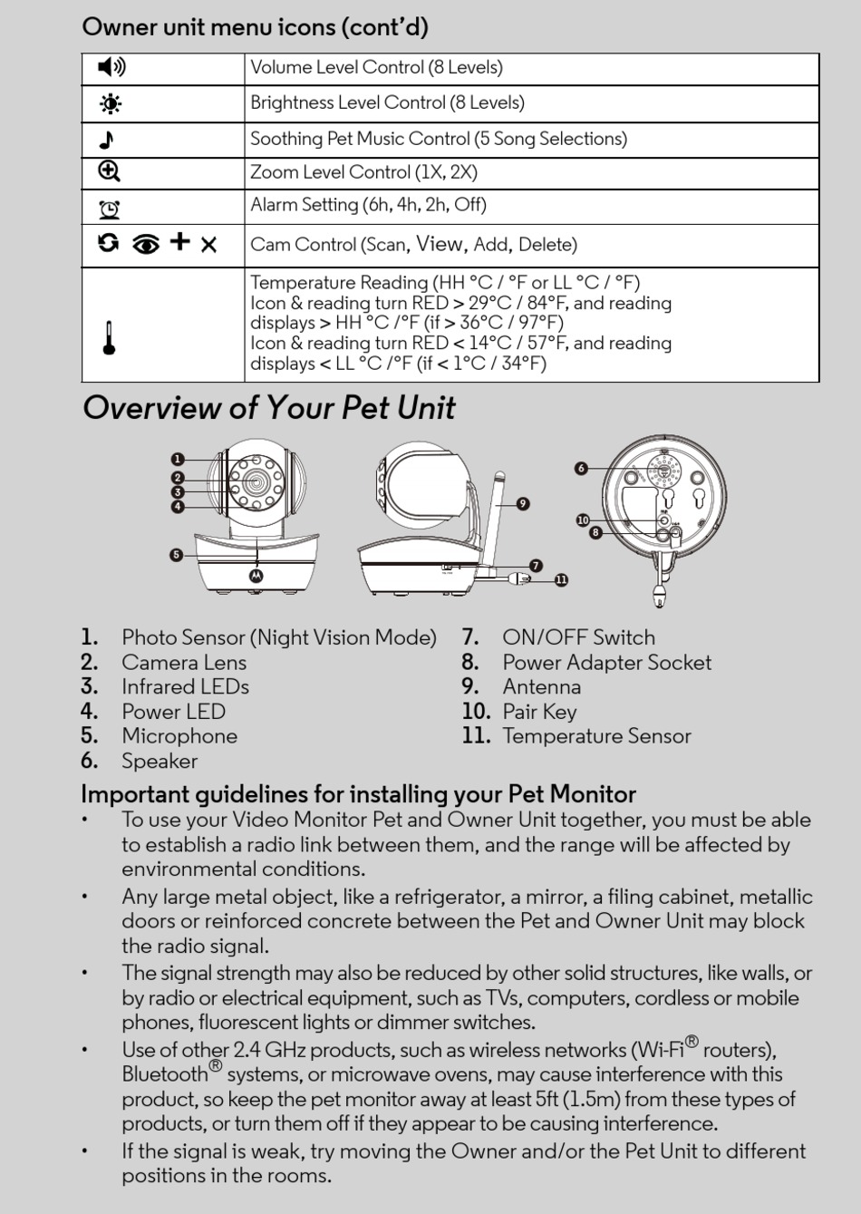 product, so keep the pet monitor away at least 5ft (1.5m) from these types of