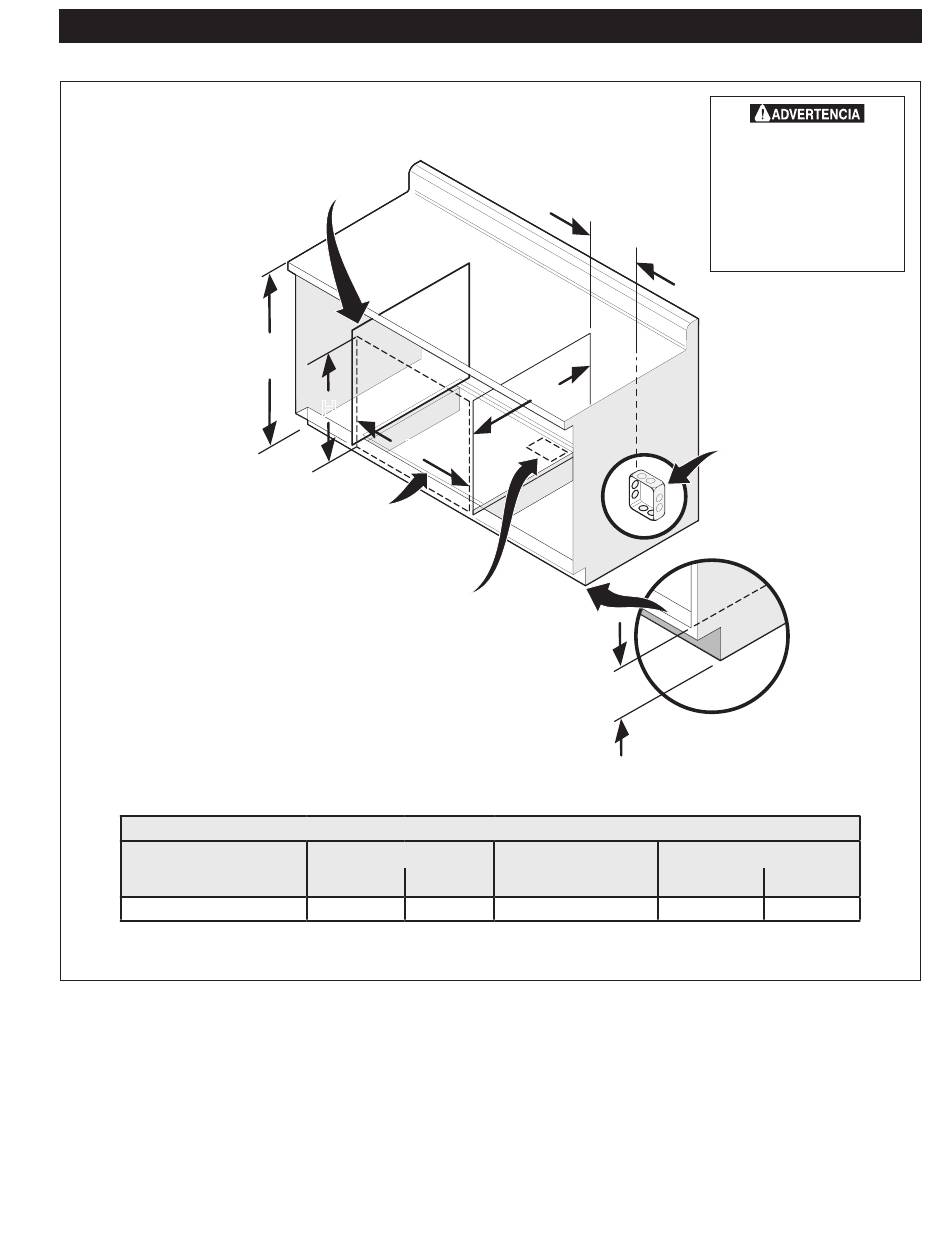 Para una instalación típica de un horno eléctrico incorporado debajo del mostrador, véase la figura 8.