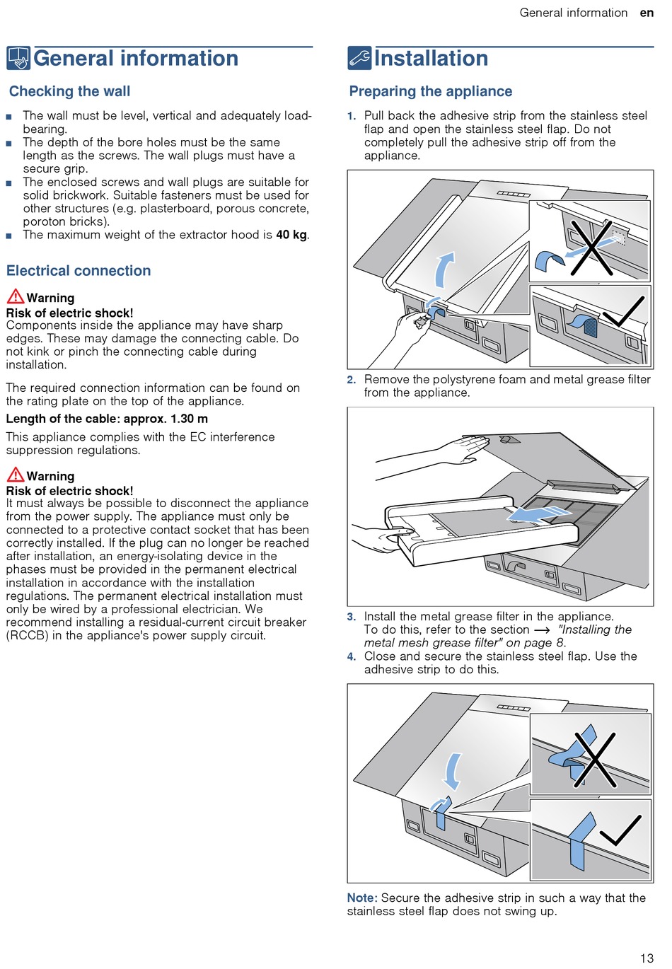 metal mesh grease filter" on page 8.