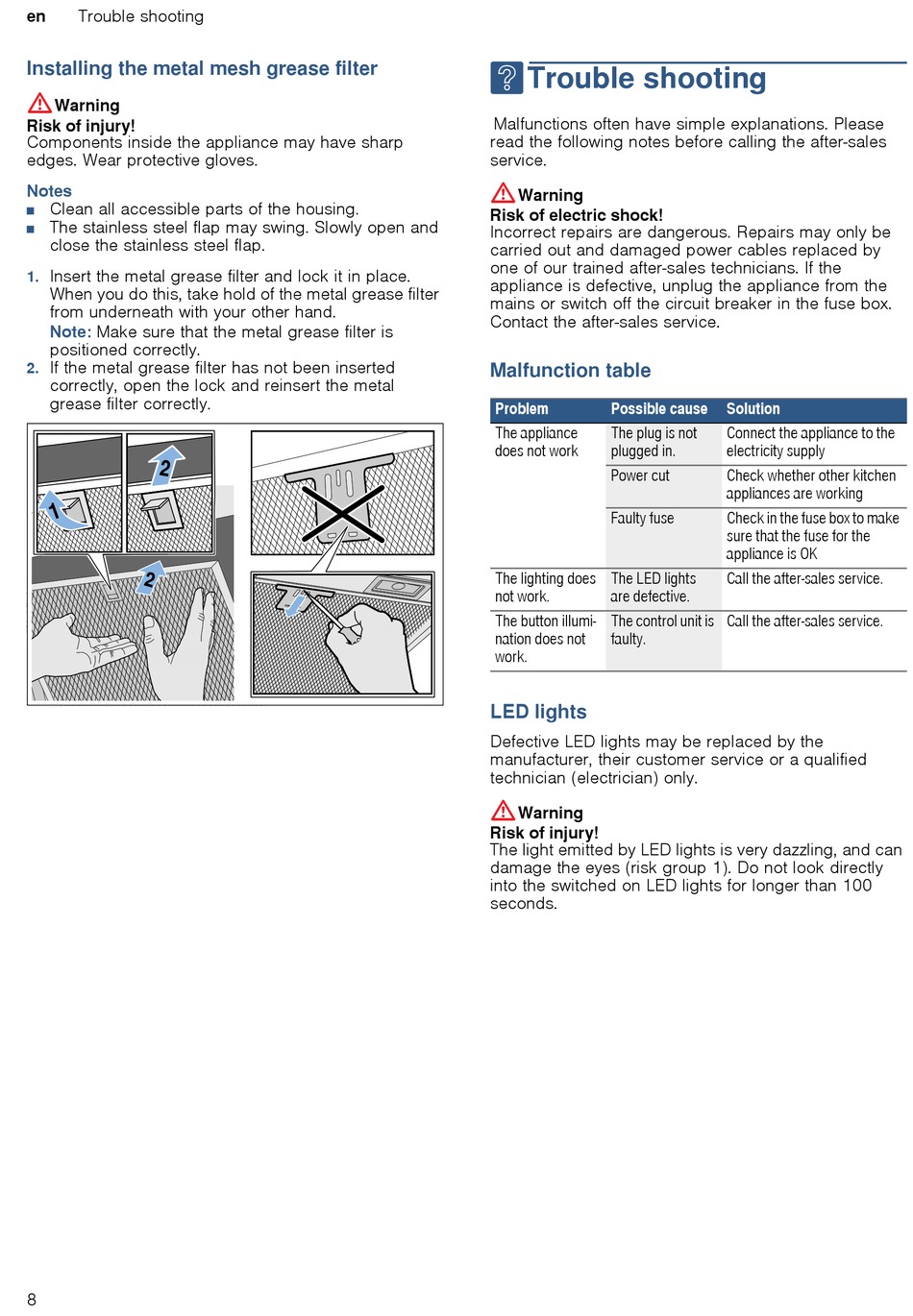 grease filter correctly.