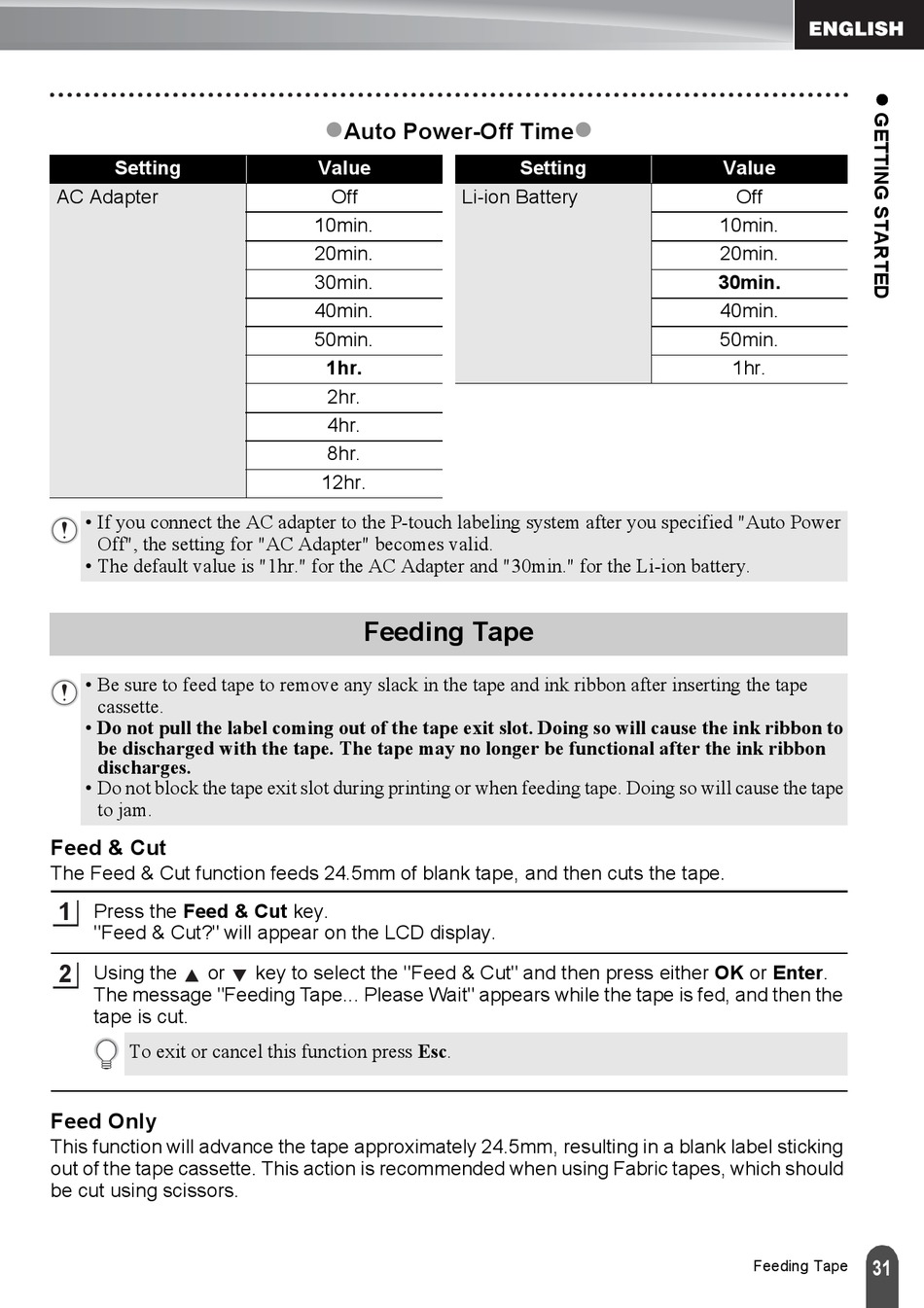 • If you connect the AC adapter to the P-touch labeling system after you specified "Auto Power