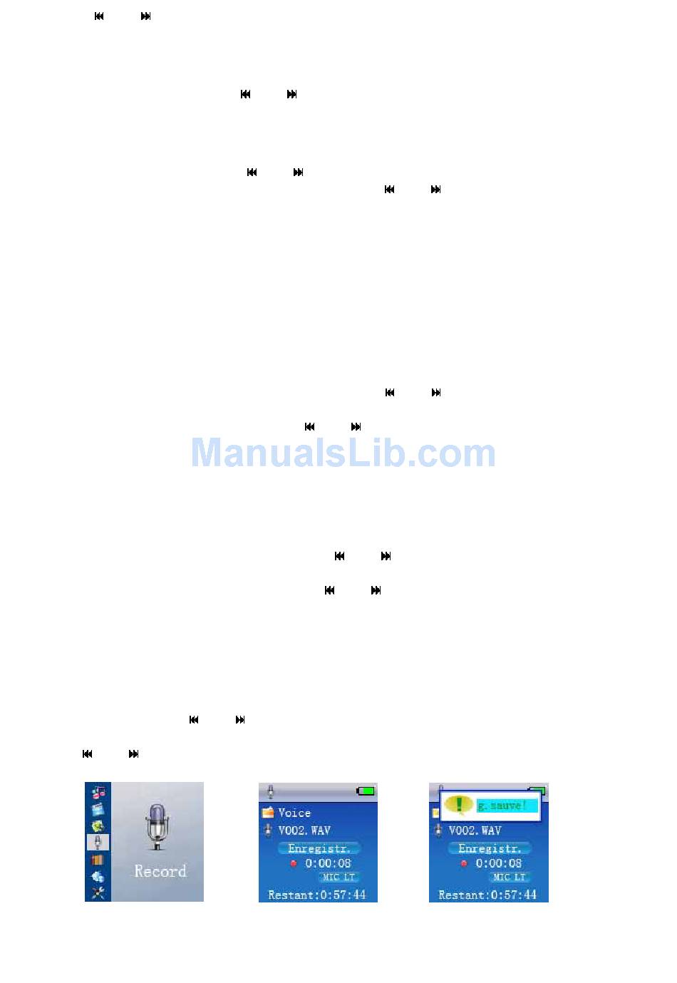Select "Record" under the main menu and short press "ENTER", a prompt window of