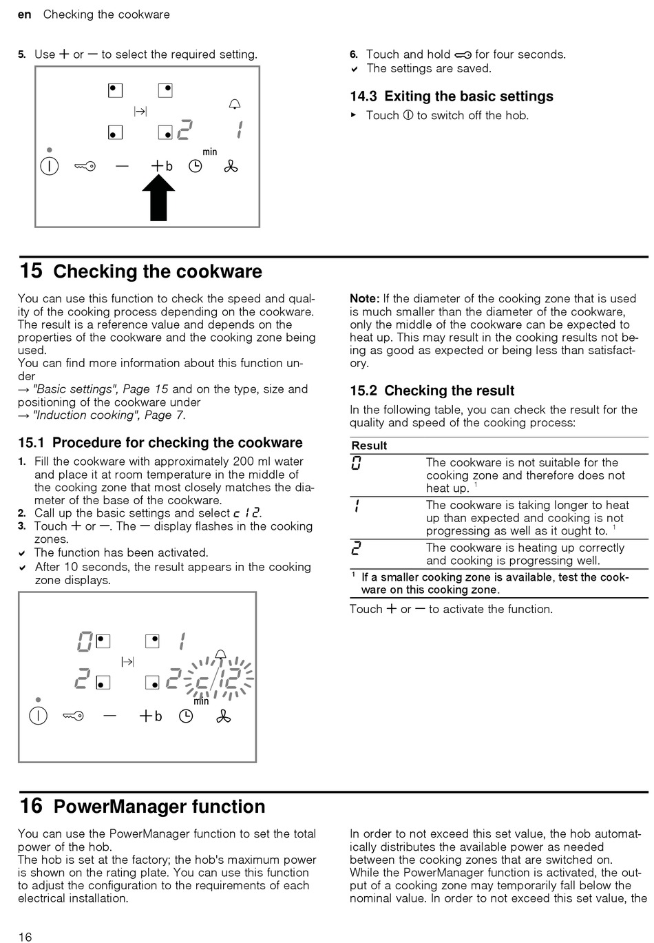 15.1 Procedure for checking the cookware