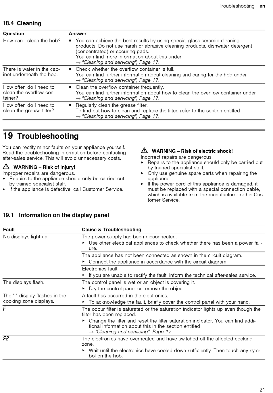 If you are unable to rectify the fault, inform the technical after-sales service.