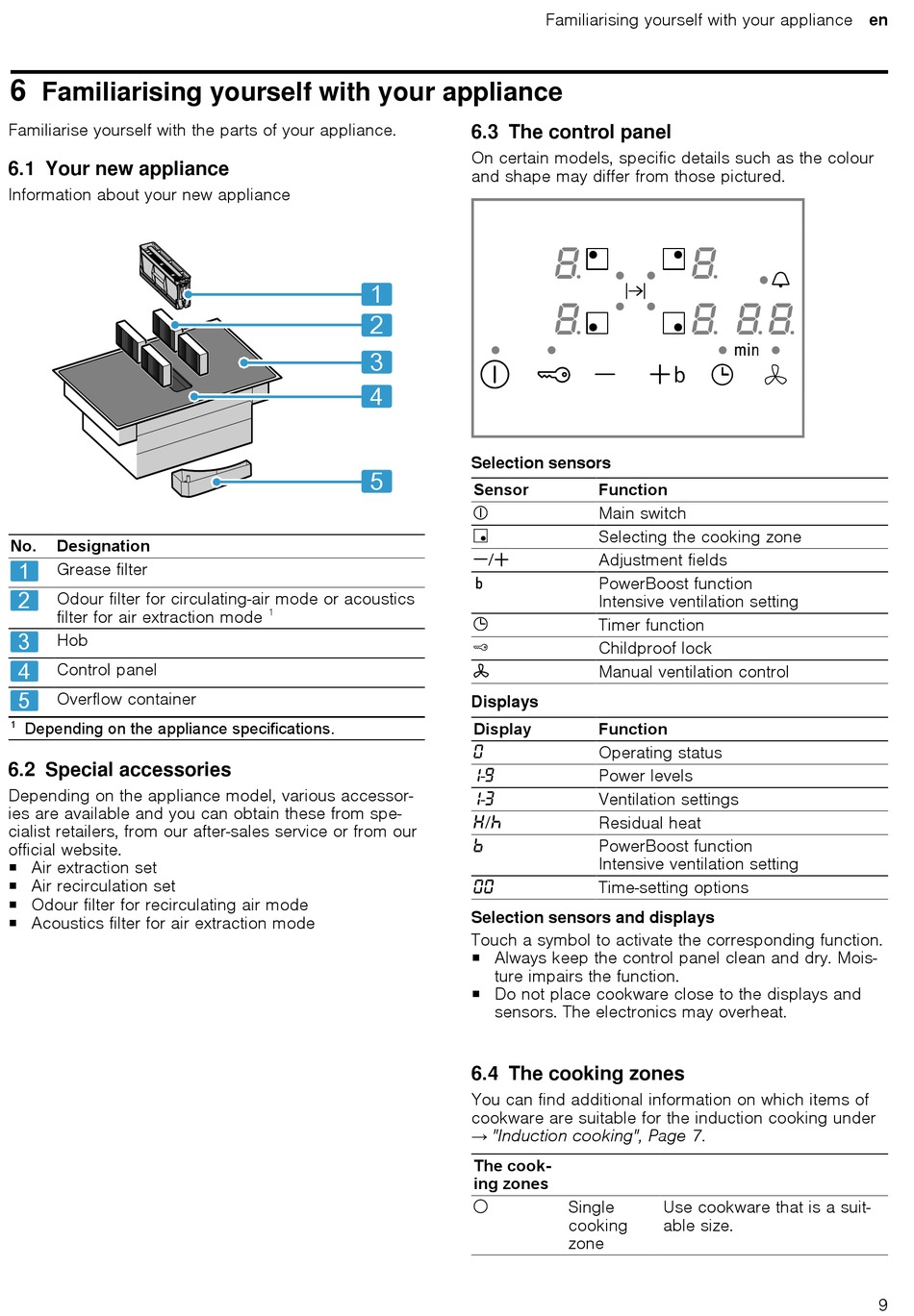 6.4 The cooking zones