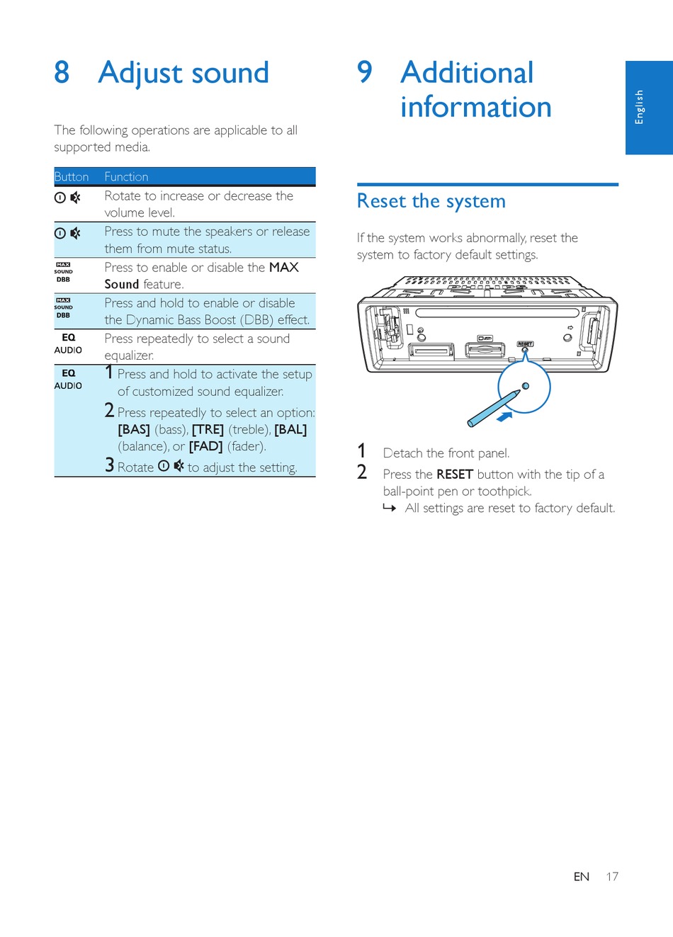 8 Adjust sound