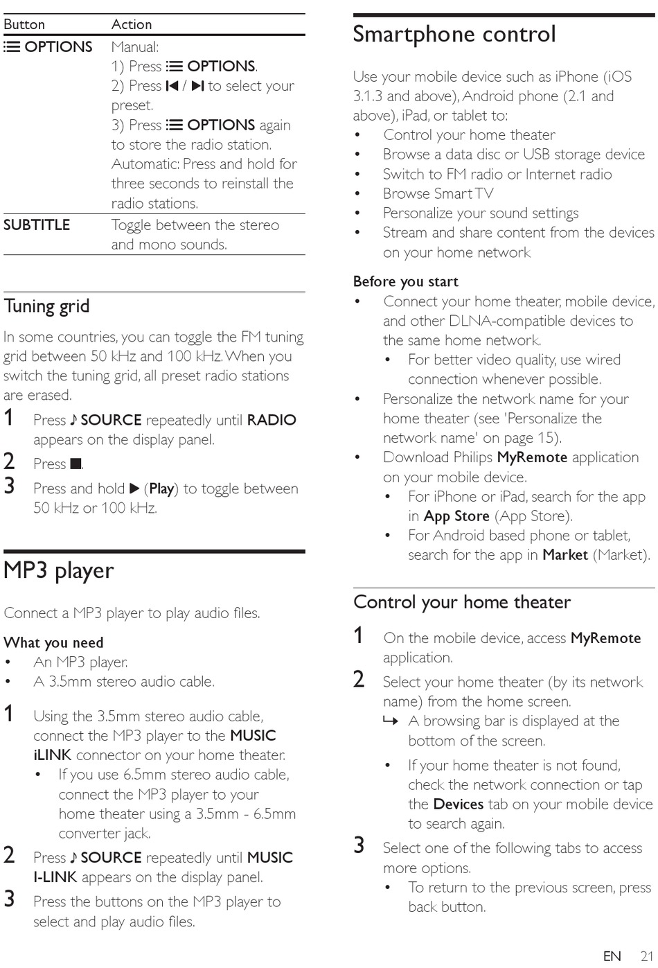 home theater (see 'Personalize the