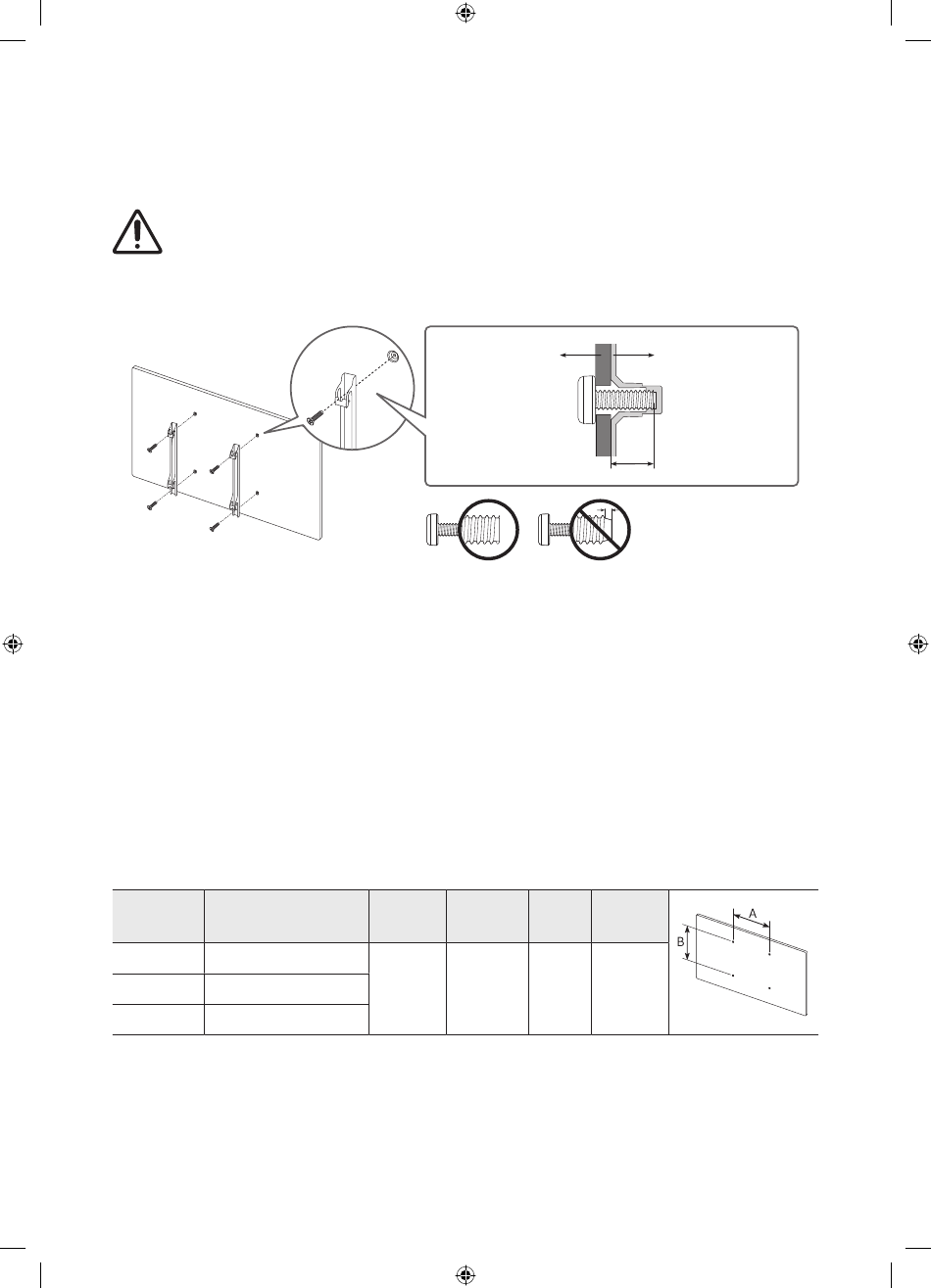 • If you are installing a third-party wall mount, note that the length of the screws you can use to attach the TV to the