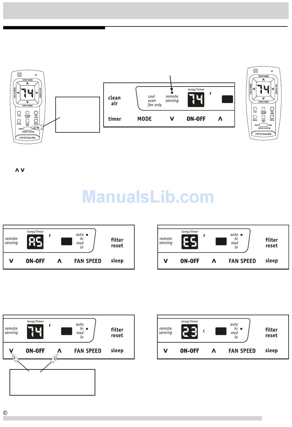 To activate the remote sensing feature, point the remote control towards the unit and press the remote sensing Start button. Next, use