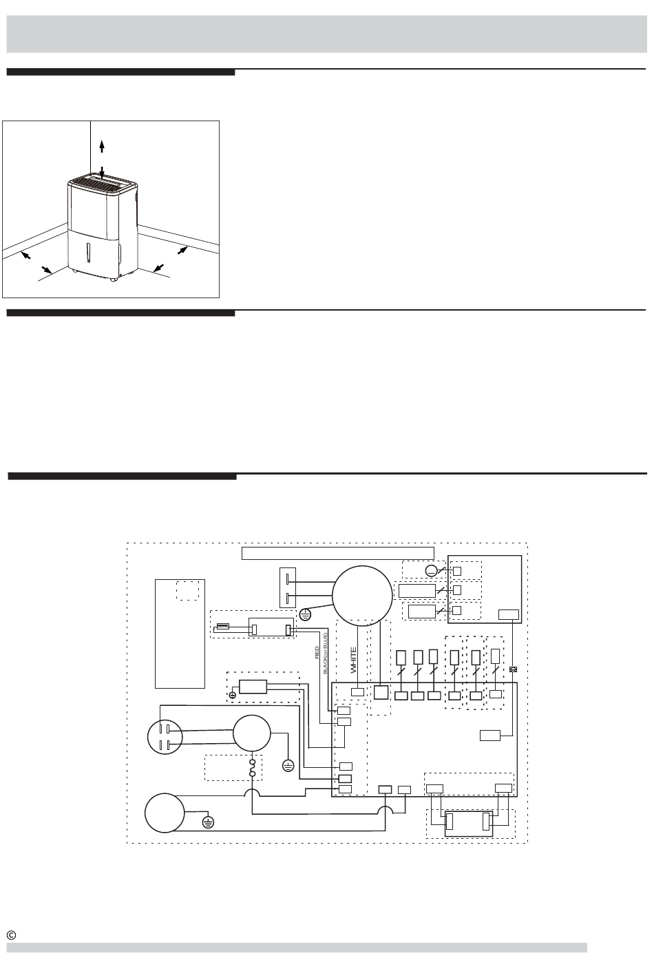5. There should be a minimum of 12 inches clearance around the dehumidifier. The unit will