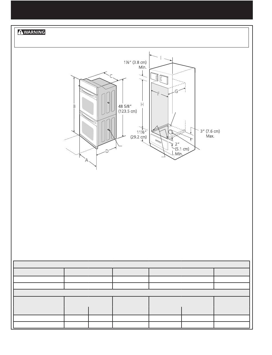 center the oven in the space provided. The oven must be centered to prevent excess heat buildup that may