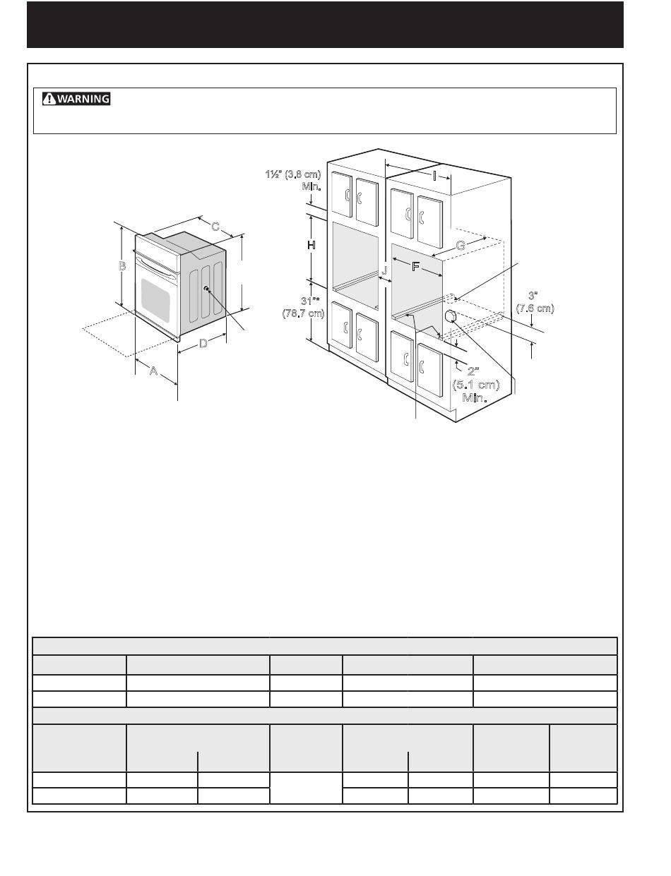 1. Each wall oven must be installed in a separate,