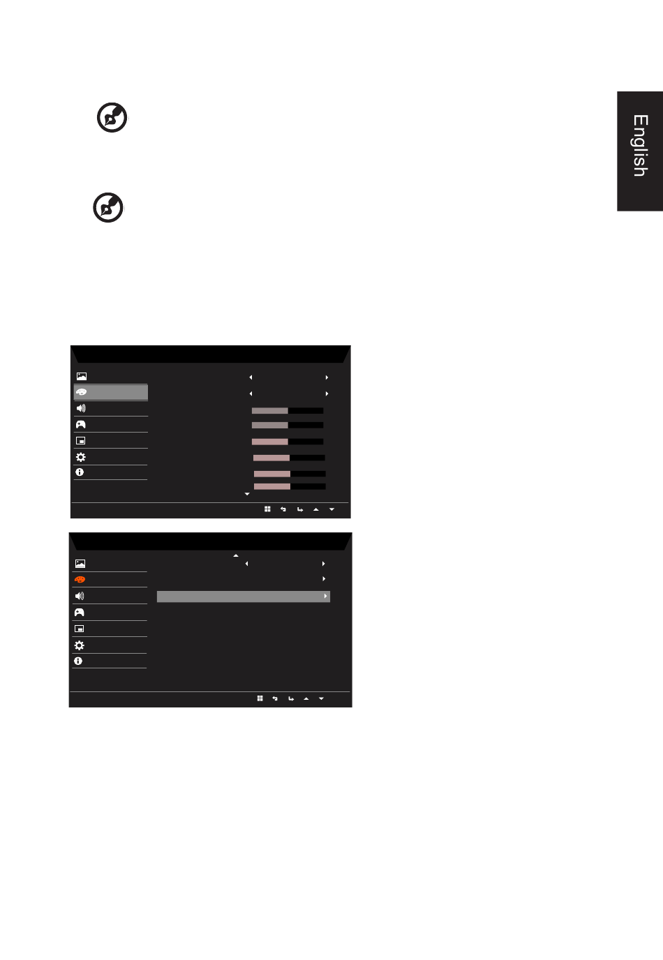 Using the ▲/▼ keys, select Color from the OSD. Then navigate to the picture element