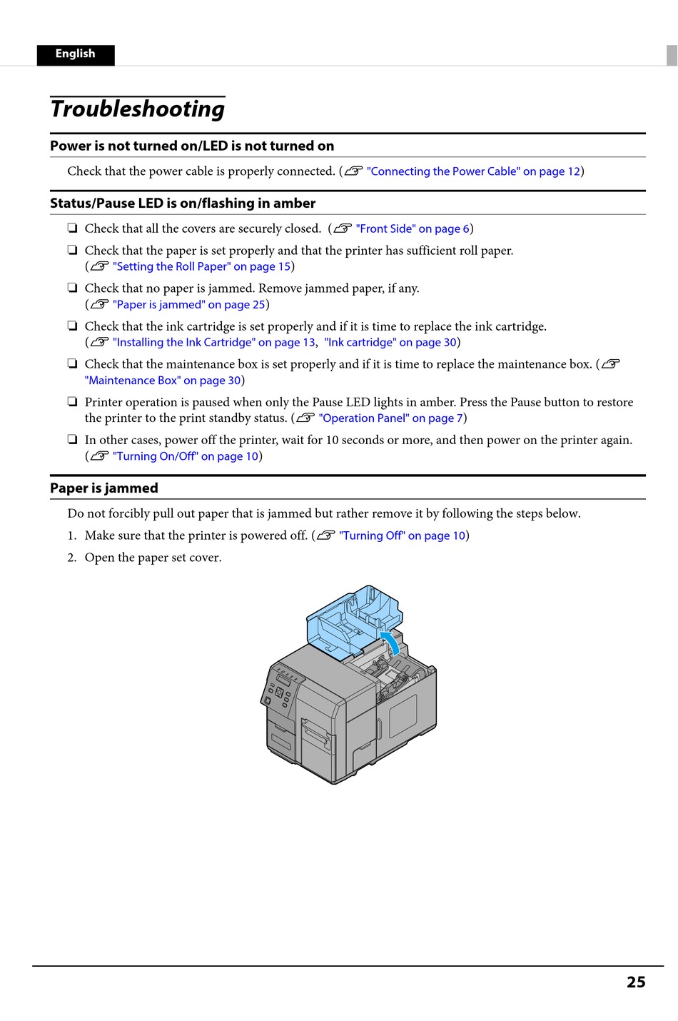 "Paper is jammed" on page 25