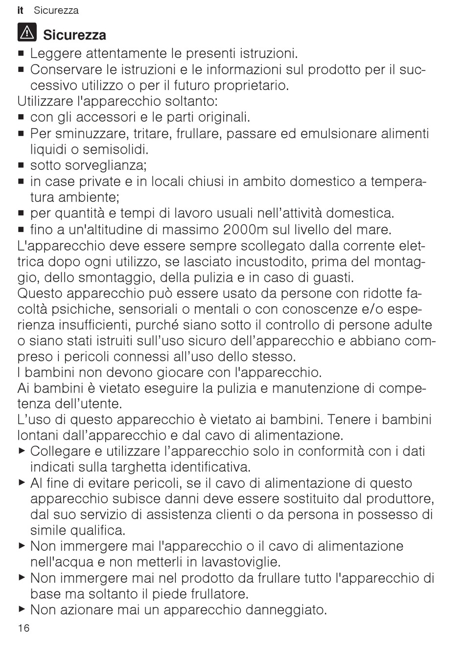 ▶ Non immergere mai nel prodotto da frullare tutto l'apparecchio di